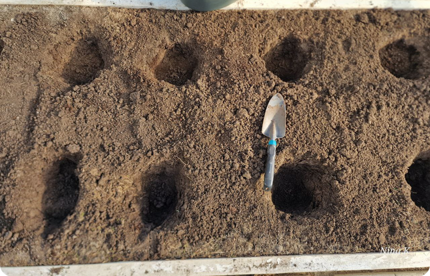 Katrā bedrītē ielejiet 200–250 ml šķīduma. Tas stiprinās saknes, dezinficēs augsni un stimulēs augšanu.