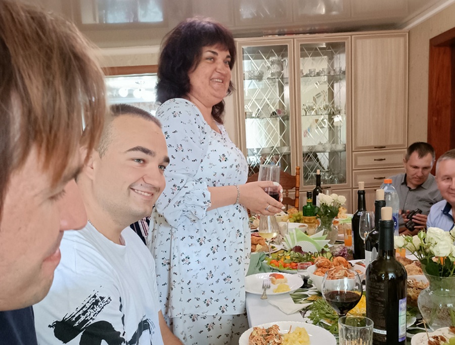Kad lielākā daļa tostu jau bija izskanējuši, zālē ienāca kaimiņiene Viktorija. Viņa bija nedaudz nokavējusi, tāpēc viņas sveiciens izrādījās vakara noslēdzošais akords.