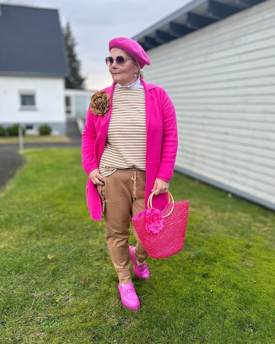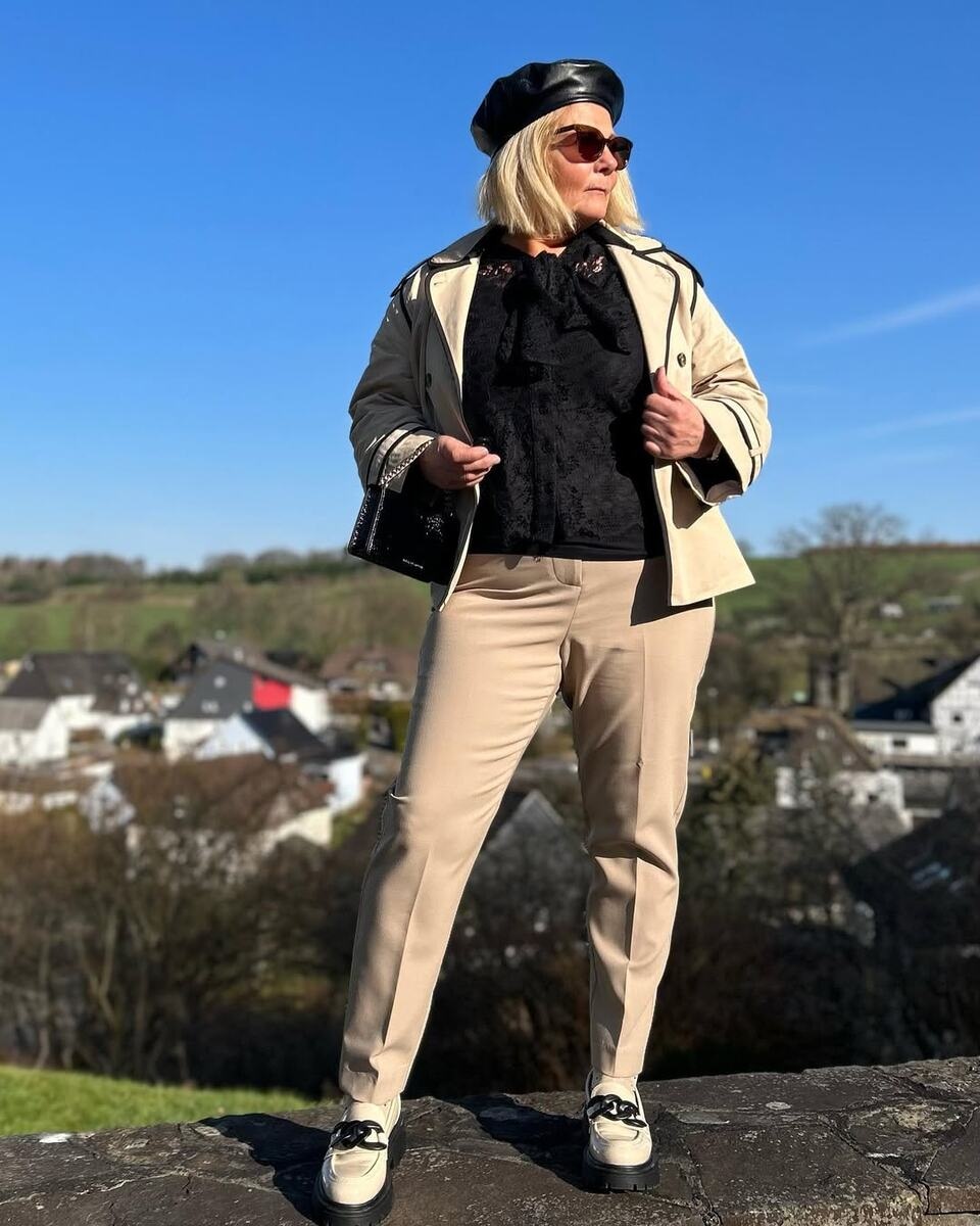 Kā rīkoties: nekopējiet jauneklīgus tēlus, pielāgojiet tos, katrā sezonā iekļaujiet 1–2 aktuālās tendences (piemēram, krāsu, stilu vai aksesuāru); Aplūkojiet savu vienaudžu tēlus sociālajos tīklos — mode 50+ šobrīd ir topā.