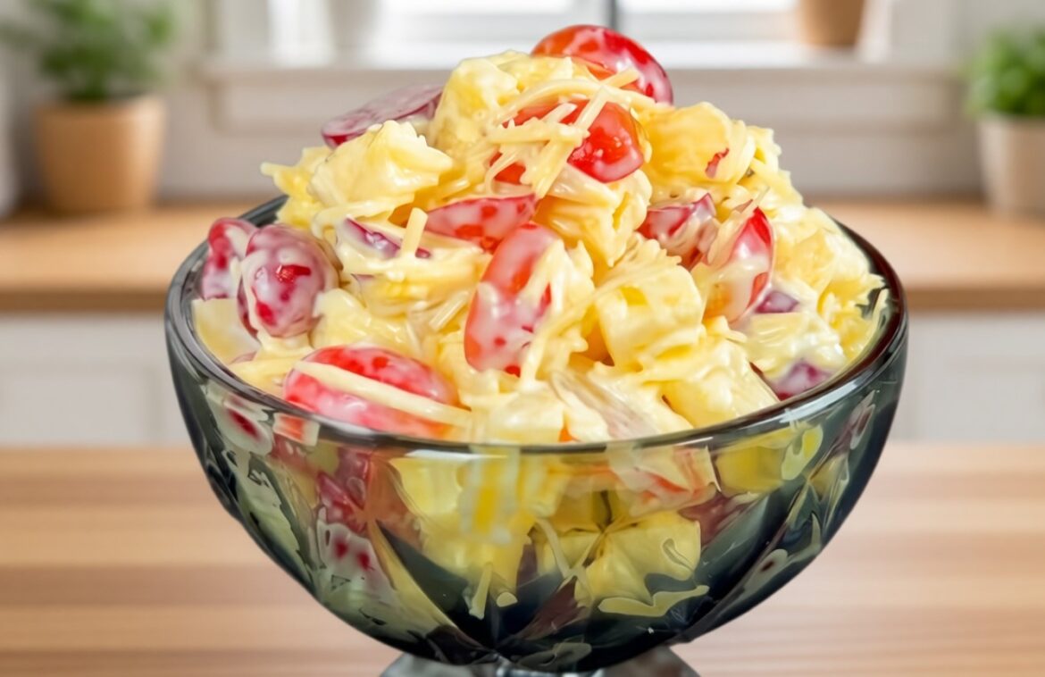 Vienkārši sajauciet sieru ar vīnogām un ananasiem: neparasts salātu atklājums, kas pazūd no galda pirmais